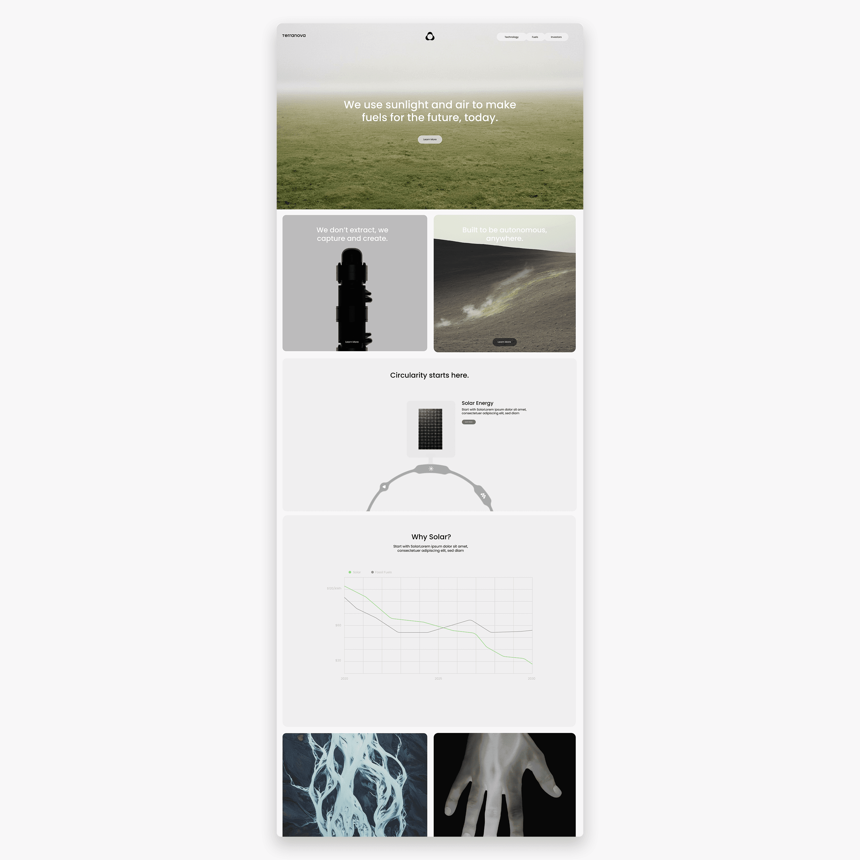 We took on creating an entirely new name, identity, and creative direction for Terranova including designing their flagship fuel producing T-Node module. We sought to bring a humanistic, aspirational, and precise yet approachable aesthetic to the brand and educational storytelling.